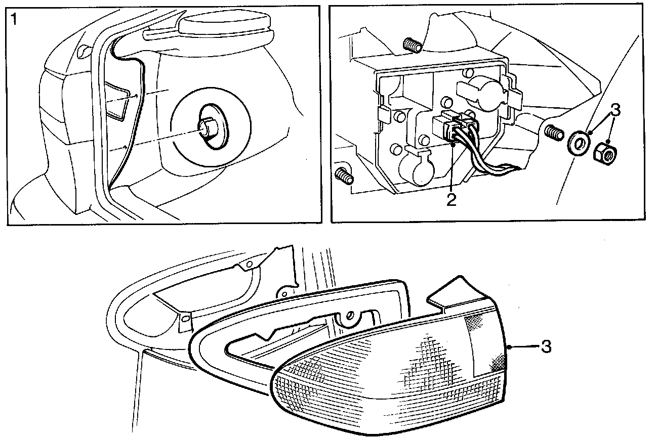 3 Remove the three nuts securing the lamp body and remove the light cluster.