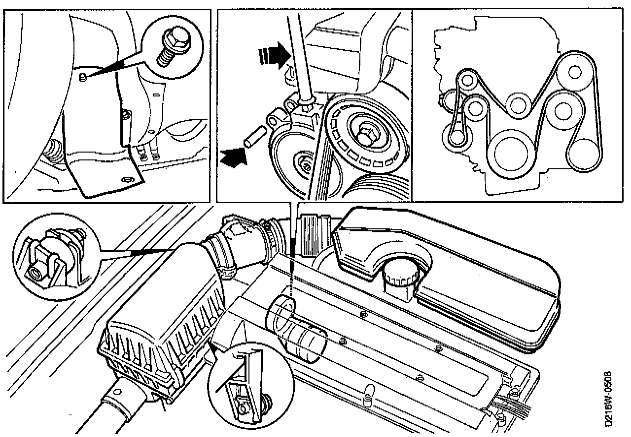 NOTE: Exercise the utmost care to ensure that the belt tensioner does not break at its end position.