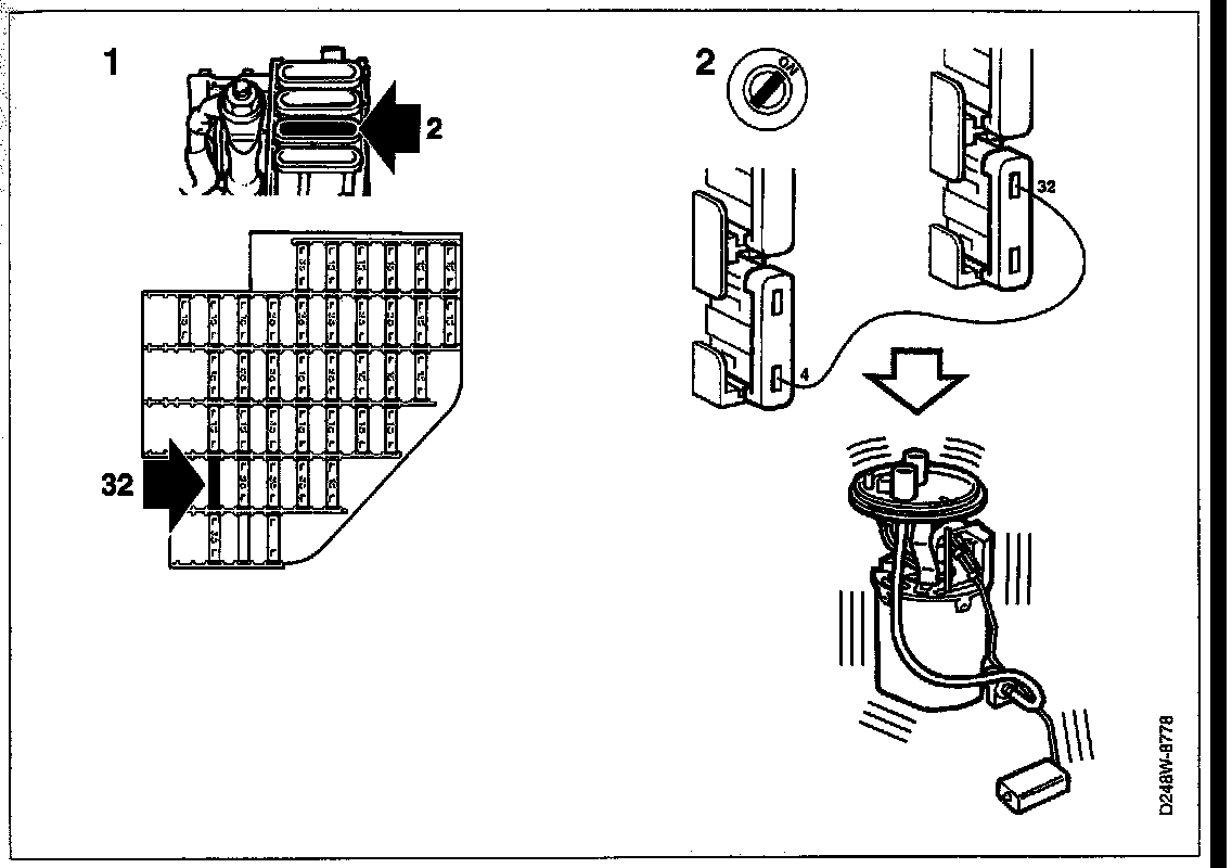 - Forcibly actuate the fuel pump by connecting a jumper lead between fuses 4 and 32.