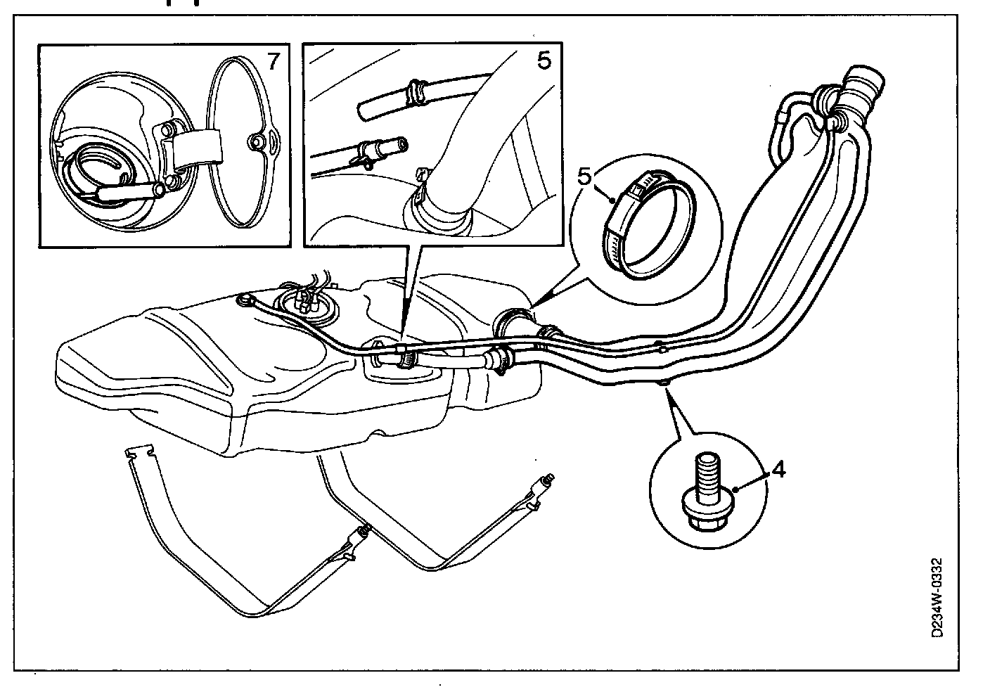 Important When fitting a replacement plastic bolt it is important to fit a new bolt of plastic. In the event of a collision, the plastic bolt must give way so that the filler pipe, which is also made of plastic, will not be damaged.