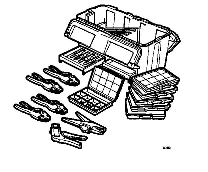 In addition to these boxes and tools, the case also contains two external compartments. One of these compartments can be used for storing contact extraction tool 85 80 151, for instance. The other compartment can be used for any other suitable equipment.
