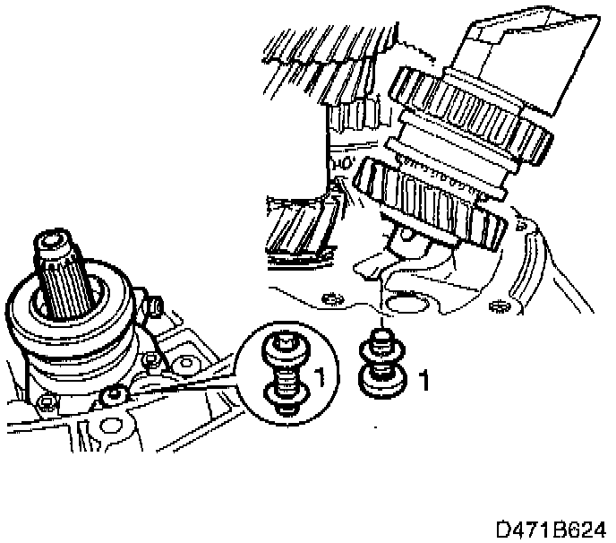 For increased reverse gear service life and improved functions when removing the key, a reinforced bolted reverse shaft has been introduced. This means that when reconditioning a manual gearbox, the 0-ring-sealed bolt securing the reverse gear to the clutch housing must be removed before the reverse gear is removed to avoid damaging the clutch housing.