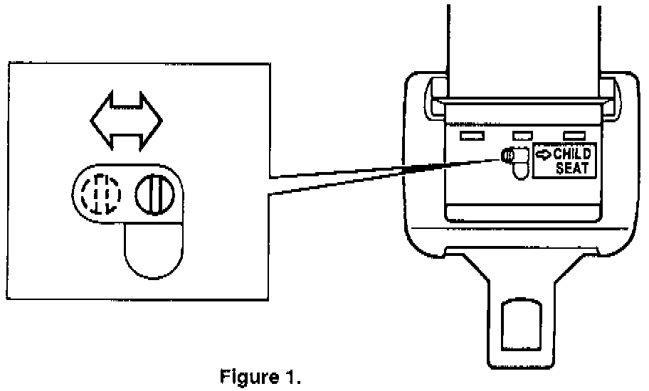 2. Move the button the locking tongue to child seat position to activate the locking feature. See Figure 1.