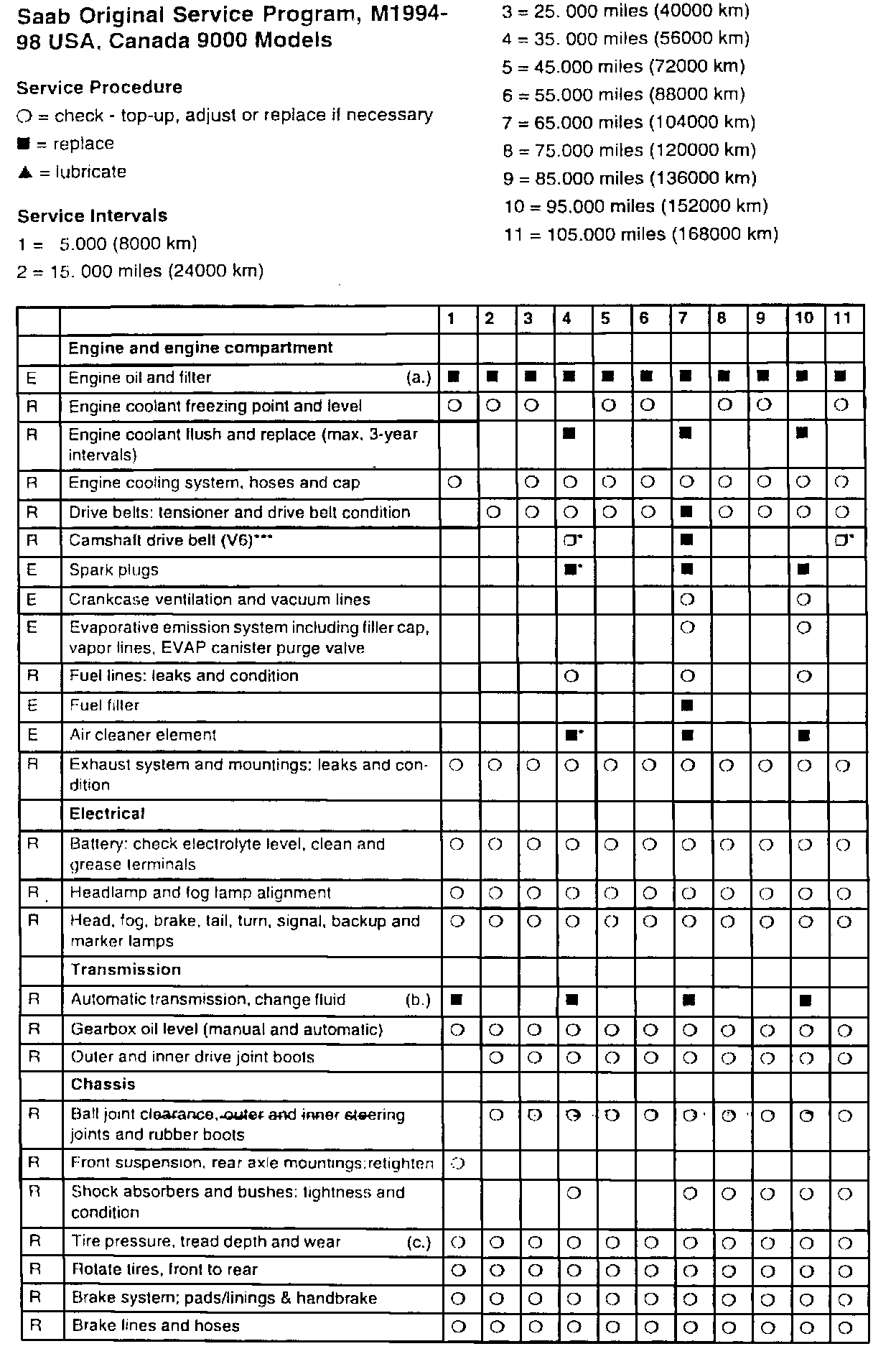 Service Program US and CA, model year 1994-98
