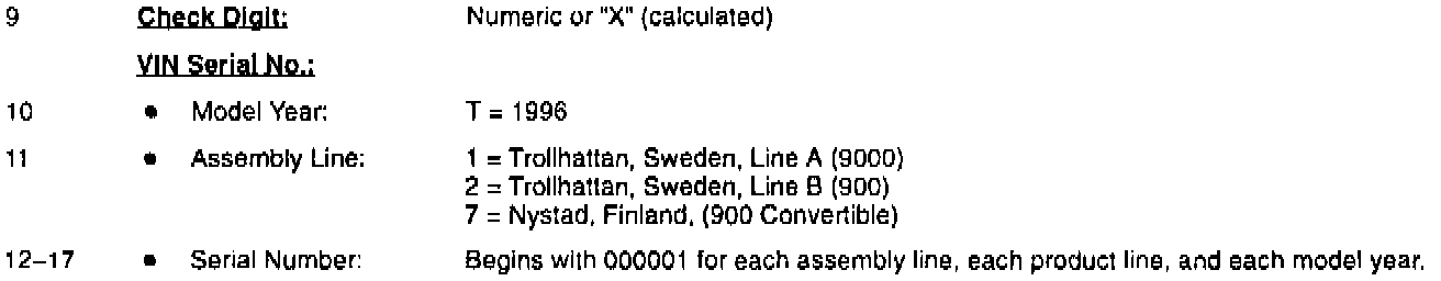 Subject: 1996 Vehicle Identification Number