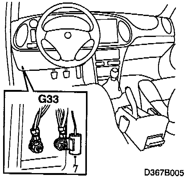 7. LHD: fit the interference suppression capacitor on the right-hand grounding screw at grounding point G33.
