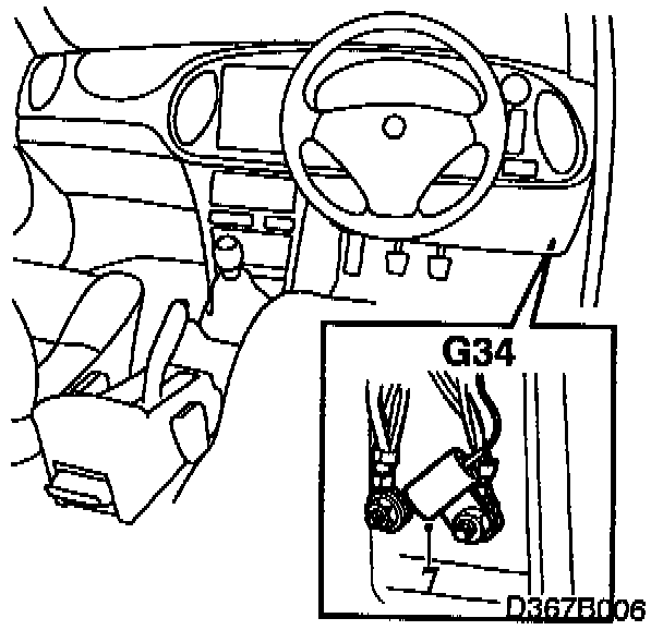 8. RHD: fit the interference suppression capacitor on the right-hand grounding screw at grounding point G34.