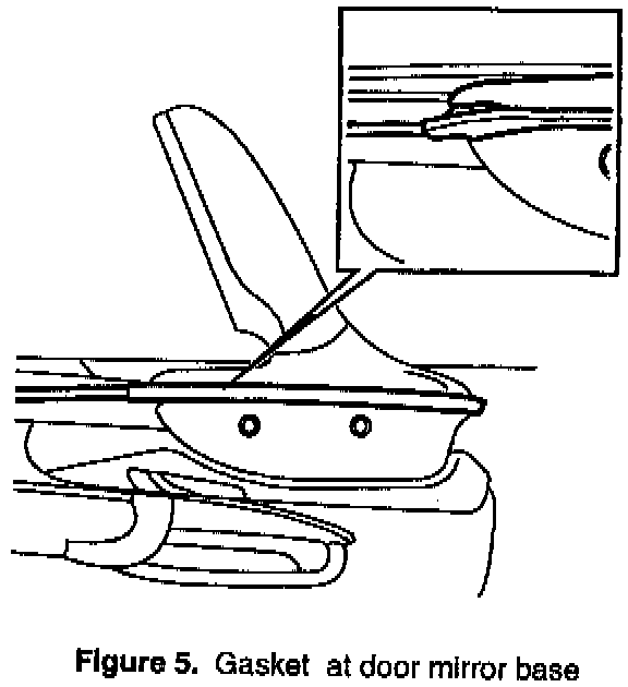 Should a customer complain that they have a water leak in the area around the door mirror on their 1995 or later 900 Convertible, a new gasket for the door mirror base can be installed. This new gasket has better sealing properties and was introduced on current production models.