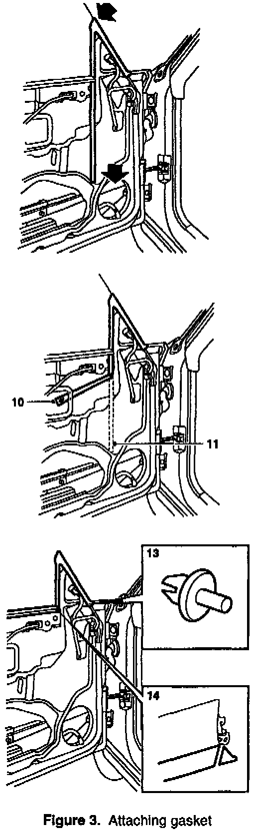 21. Glue the new gasket to the tip of the metal flange. Use 3M Super Weatherstrip Adhesive, P/N 02 45 779.