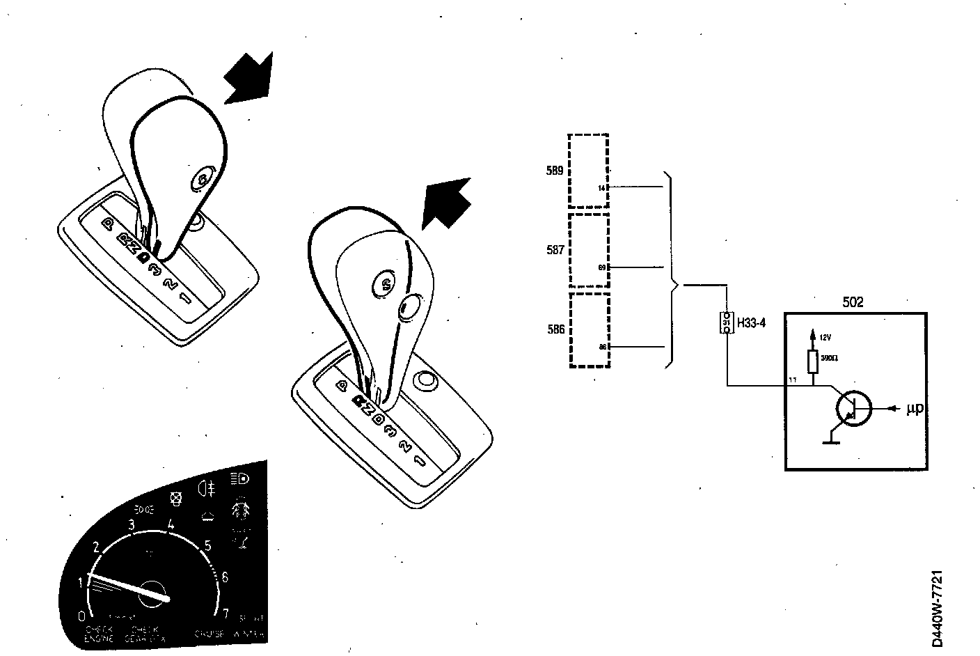 In the event of no signal being received, engine idle speed will drop below 900 rpm (4-cyl.) or 800 rpm (6-cyl.) when DRIVE is selected and then slowly rise to normal idling speed.