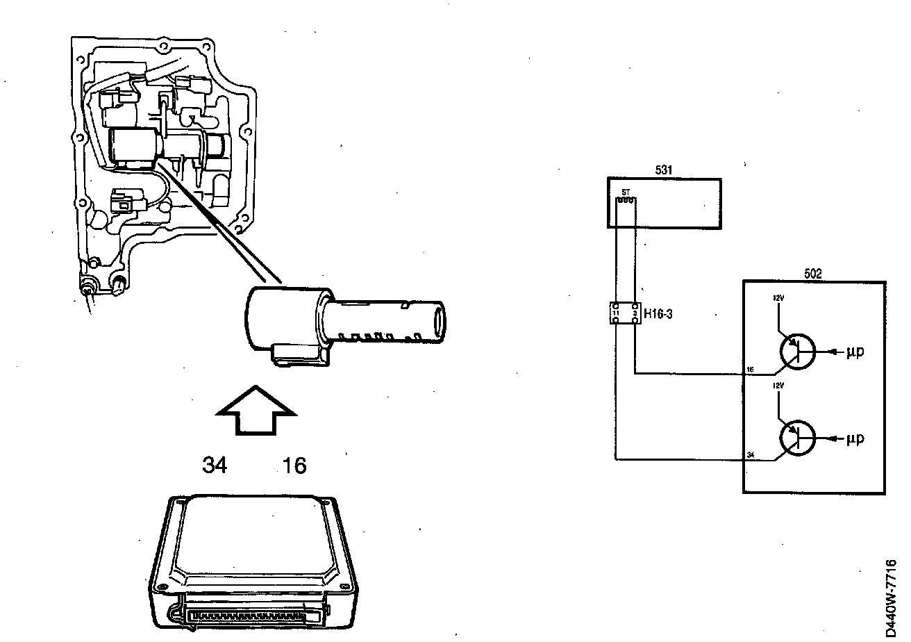 At idling speed with the handbrake applied and the selector lever in position D, the current should be about 900 mA and the fluid pressure 3.4-4.6 bar.