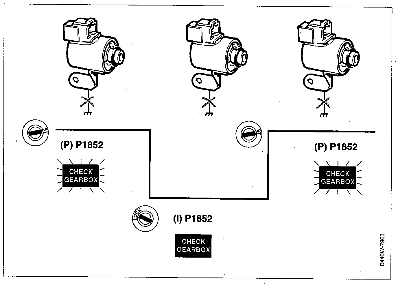 During the second trip, when the same fault has again been detected, the transmission control module sends a CHECK ENGINE request to the engine control module. The control module should then cause the CHECK ENGINE lamp (MIL) to light up. If no appropriate diagnostic trouble code is stored in the engine control module, the two indicator lamps light up and go out simultaneously.