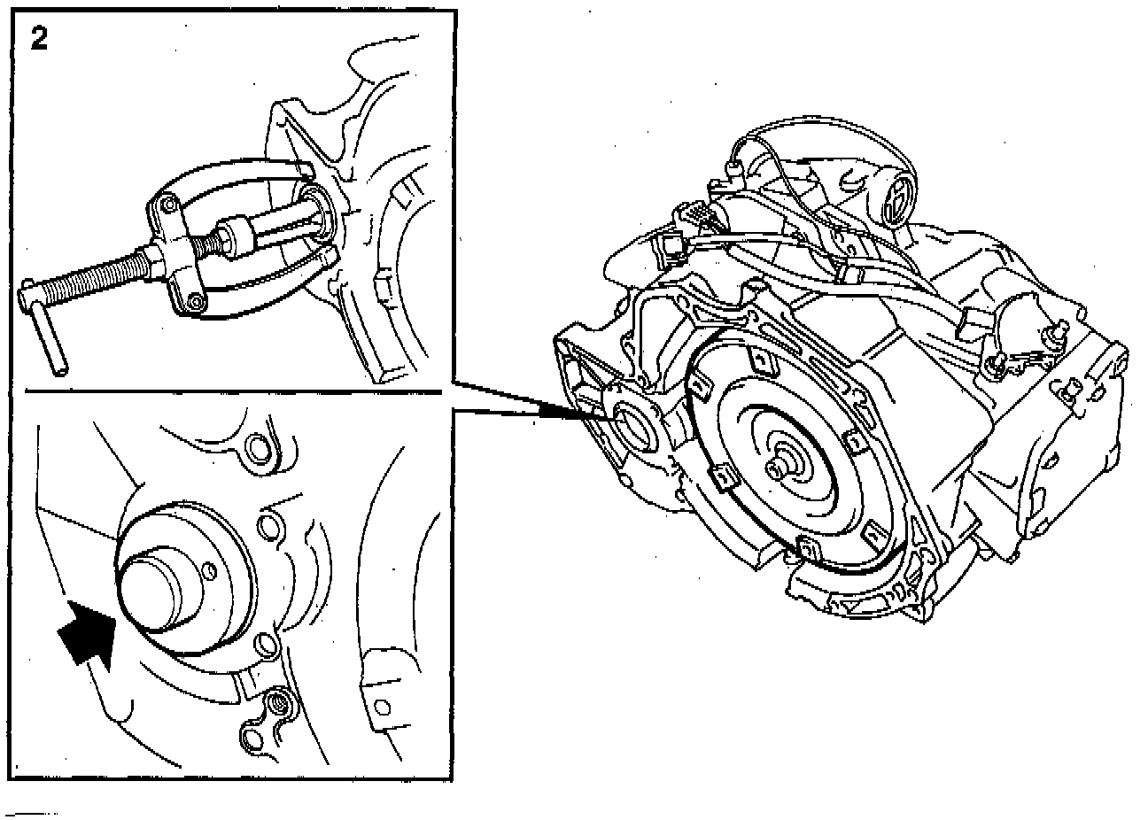 2. Remove the seal using puller tool No. 87 92 350 and support tool No. 87 91 683, or equivalents.