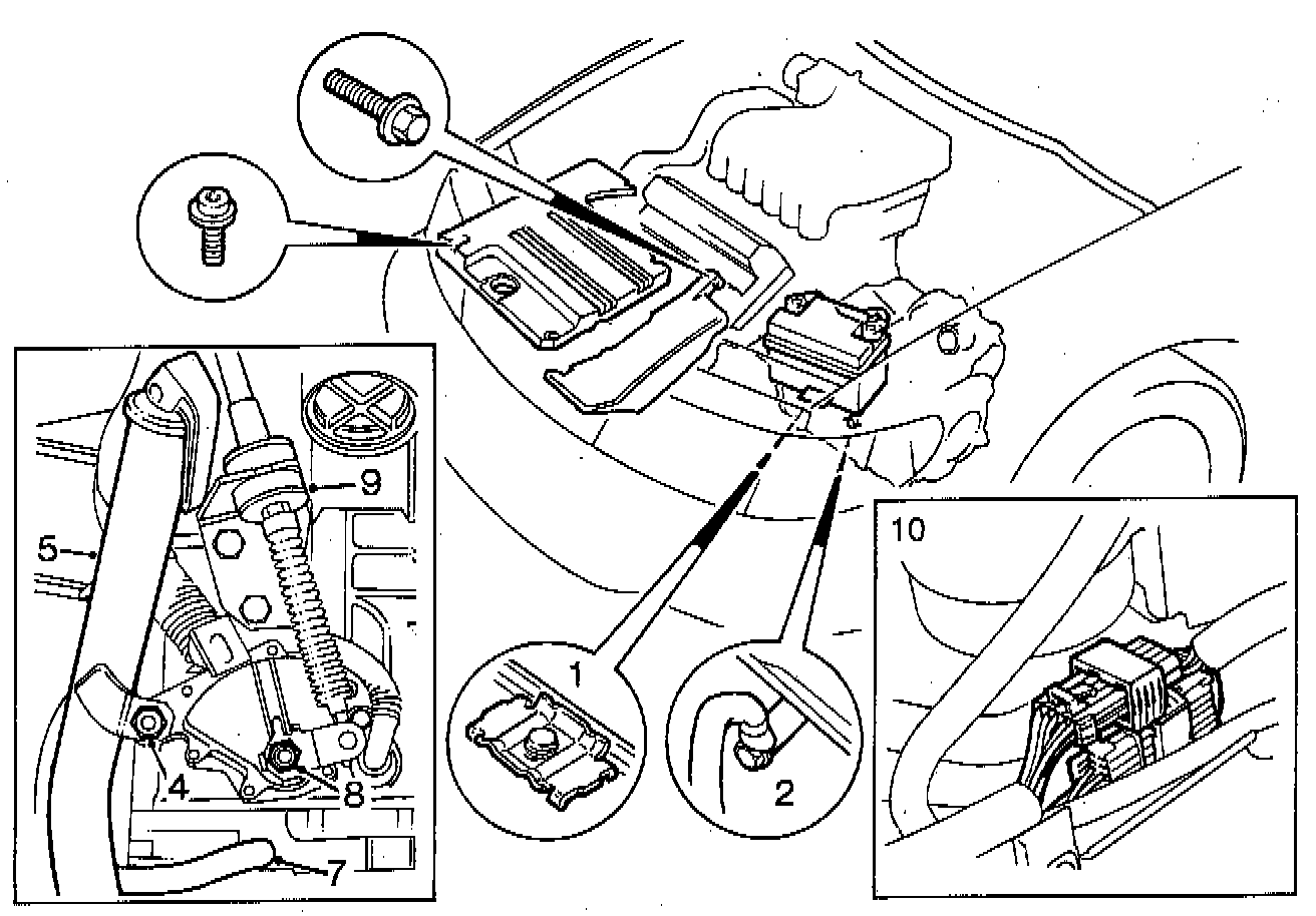 9. Remove the cable from the bracket on the transmission and bend the cable aside.