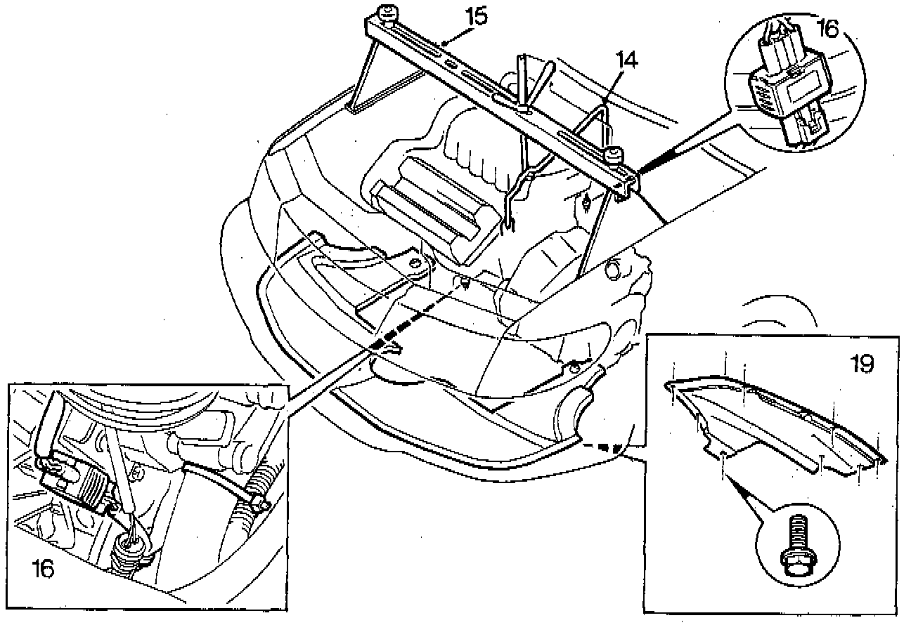 19. Remove the air deflectors and the cover in the righthand front wheel housing, secured by means of three screws.
