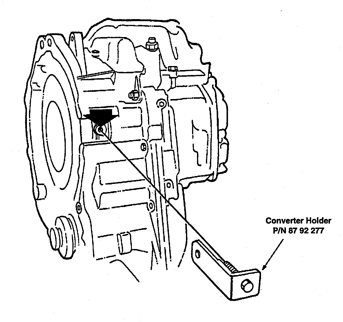 36. Install torque converter retainer, to hold the torque converter in position while removing the transmission.