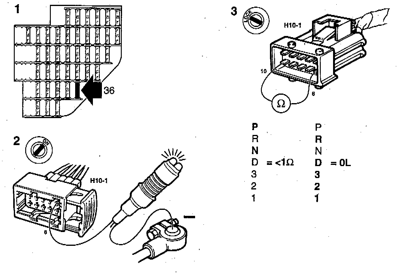 - With the selector lever in positions P and N the resistance should be less than 1 ohm.