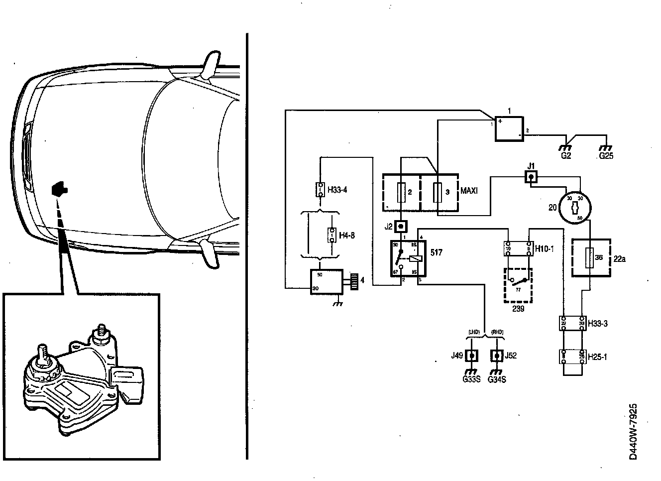 Check that fuse 36 is intact and supplied with positive battery voltage (B+).