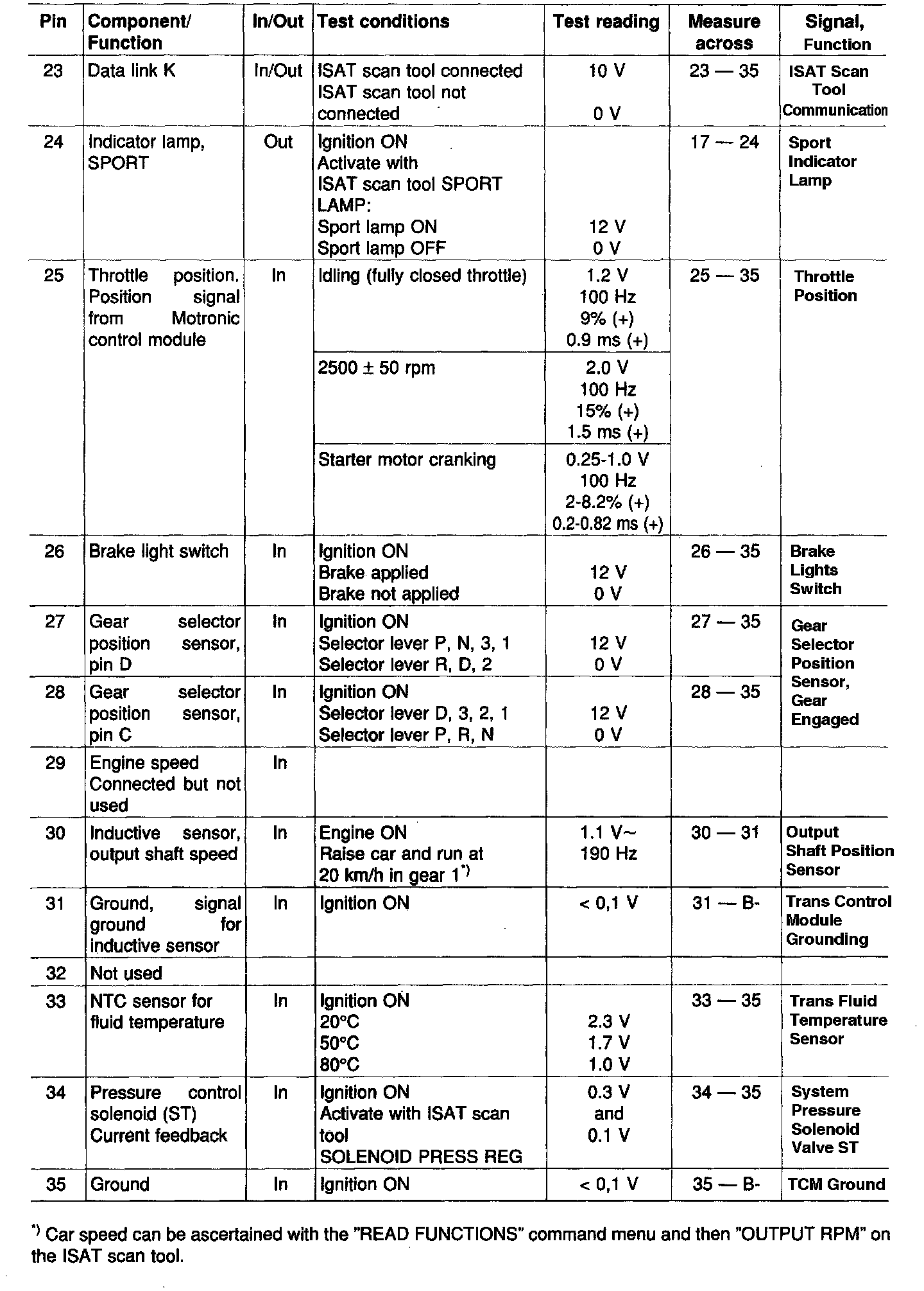 Pinout Values and Diagnostic Parameters