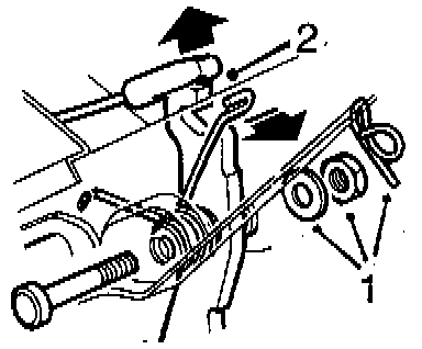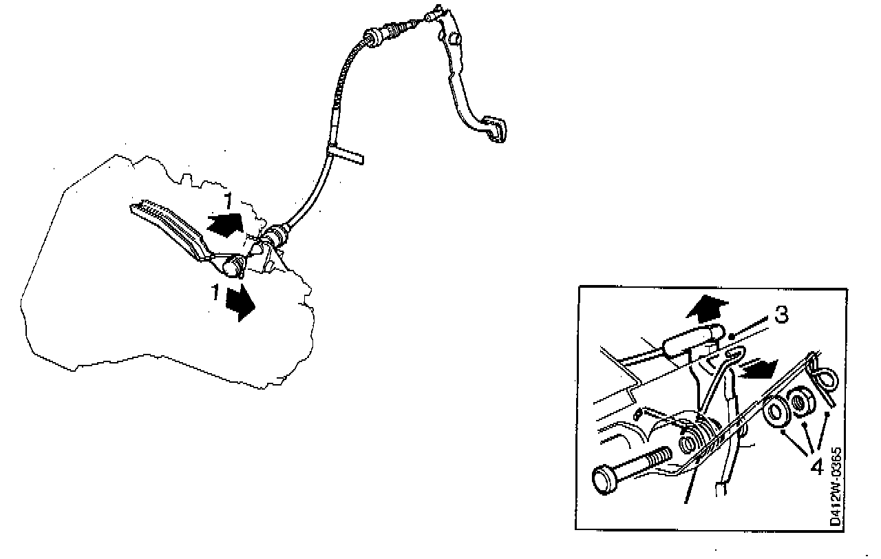 3. Move the pedal's return spring to one side and lift off the cable's plastic eye.