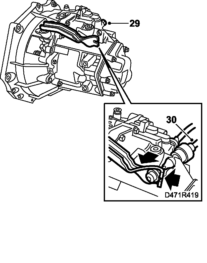 30. Fit the clutch cable sheathing in the bracket on the gearbox. Attach the cable to the clitch lever. Lubricate with grease 87 81 718 and check the play in the pedal.