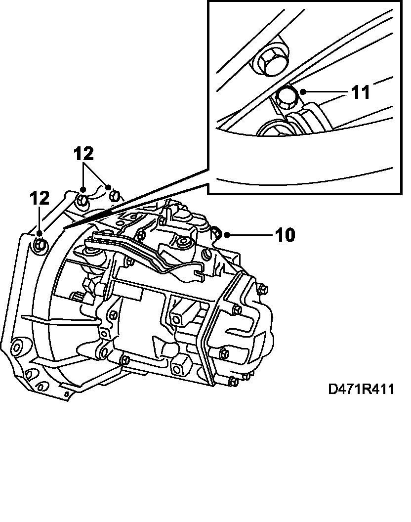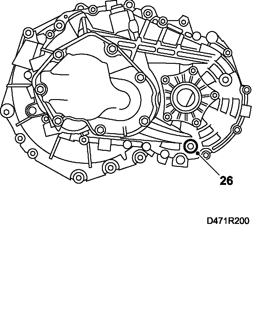 30. Undo the bolts in the engine/gearbox mating face that are accessible from below with the exception of the front one.