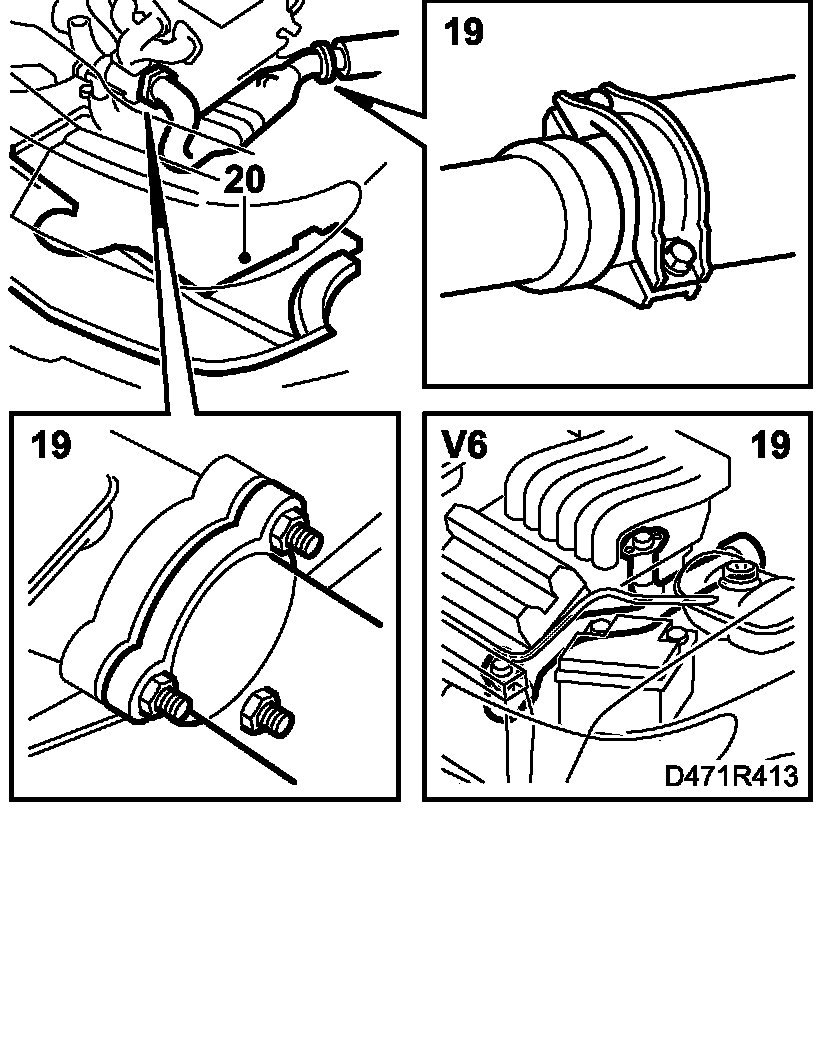 19. Remove the front exhaust system. Turbo: first undo the flange against the turbo and then undo the rear bracket. It is important to remove the exhaust system in this way as the flexible section could otherwise be damaged. Also be careful with the oxygen sensor or sensors.