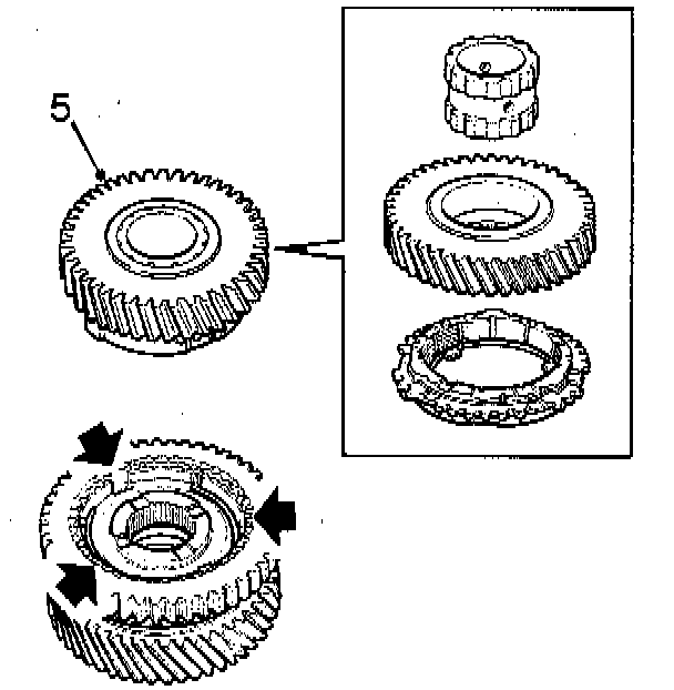 5. Assemble and install the 2nd gear's synchromesh on the 2nd gear's gear wheels.