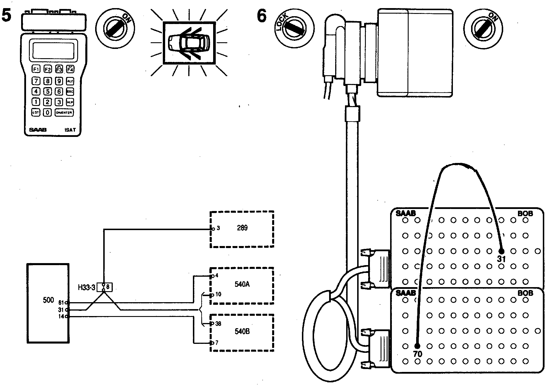 1 Plug in the Intelligent Saab Tester (ISAT) scan tool and select "READ FAULT CODES" from the menu. If any diagnostic trouble codes are present, continue in Trouble Code Tables.