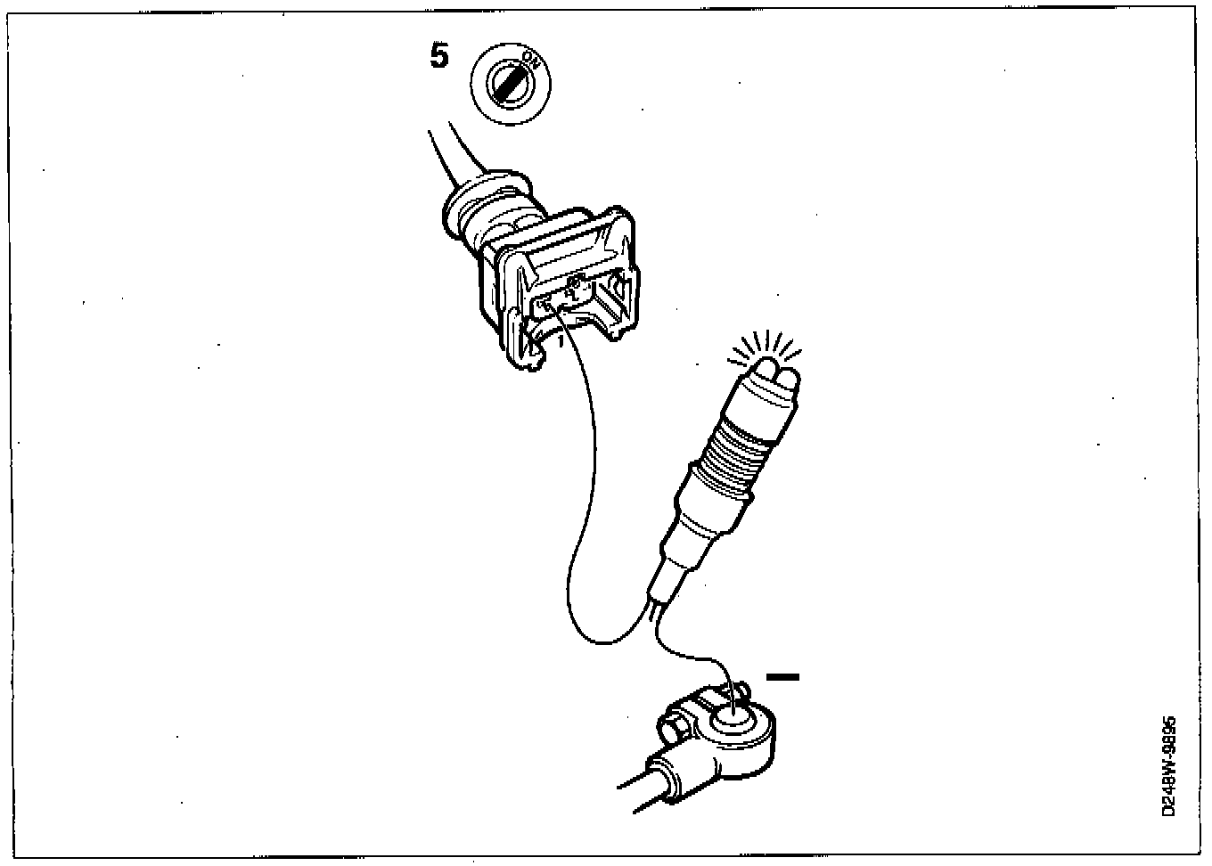 - Connect the test lamp to: pin 1 and battery negative (B-).