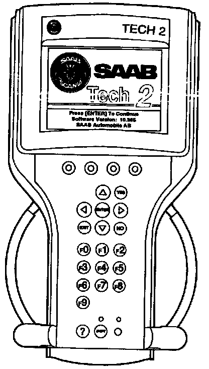 When the Tech 2 is turned on a brief self-test starts and then the heading "TECH 2" and the Saab logotype are displayed. To go to "Main Menu", press "ENTER".