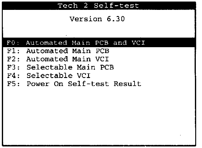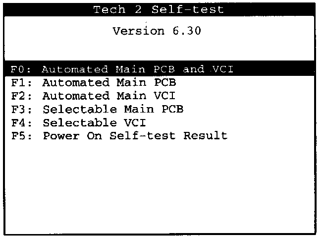 Mark "F0: Automated PCB and VCI" and press "ENTER" to test the components on the main printed board assembly and in the communications interface.