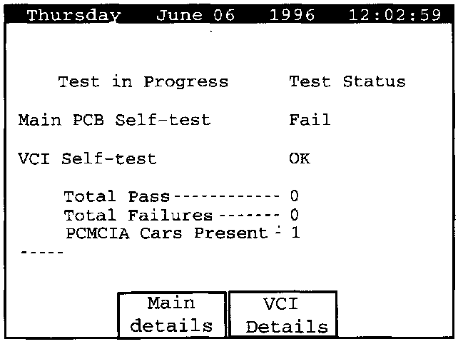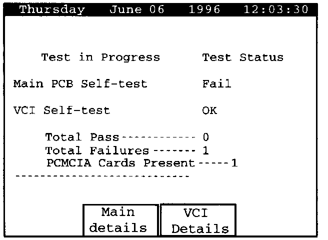When the keypad test has been completed, first the menu on the right will be displayed with the message "Test in Progress" to indicate that a self-test of the VCI interface is in progress.