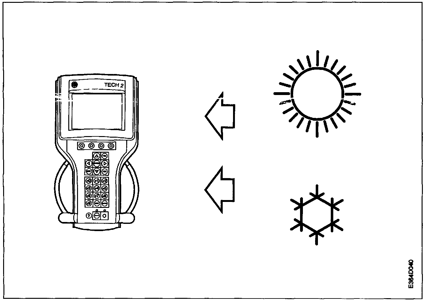^ The Tech 2 is very cold or hot, it may prove impossible to set the desired contrast level. In such case, this is because the display is sensitive to temperature and the trouble will go away when the Tech 2 attains normal operating temperature again.