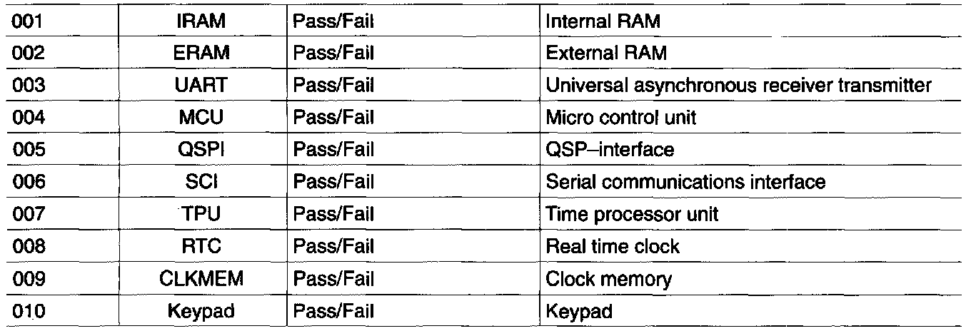 ^ A "Fail" message and the figure 1 or higher indicate a problem in one or more areas. Make a note of all fail messages and report them to the service department.