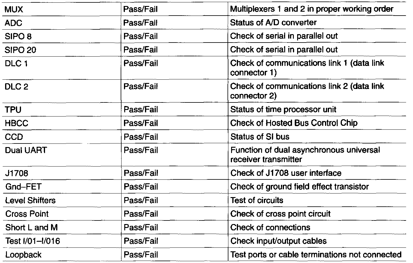 The components on the main printed board assembly and in the communications interface are tested automatically. This test is the most practicable since it limits the trouble to a single unit. The fault is diagnosed as being in either the Tech 2, the VCI module or the cables.