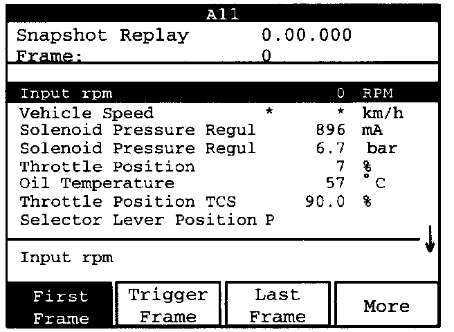 Press the "First Frame" display key to show the recording's first set of values.