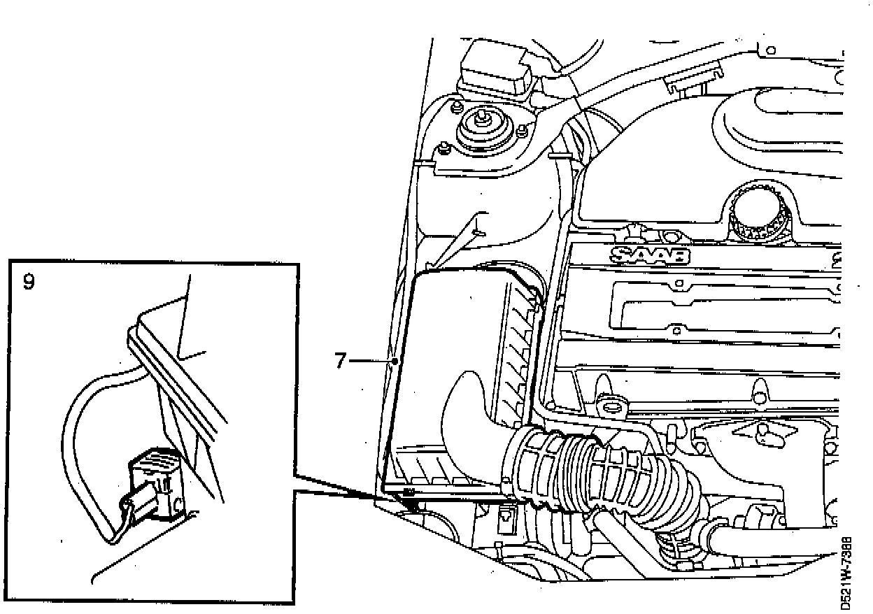 1. Unfasten the air filter housing over part and the mass air flow sensor and move it away.