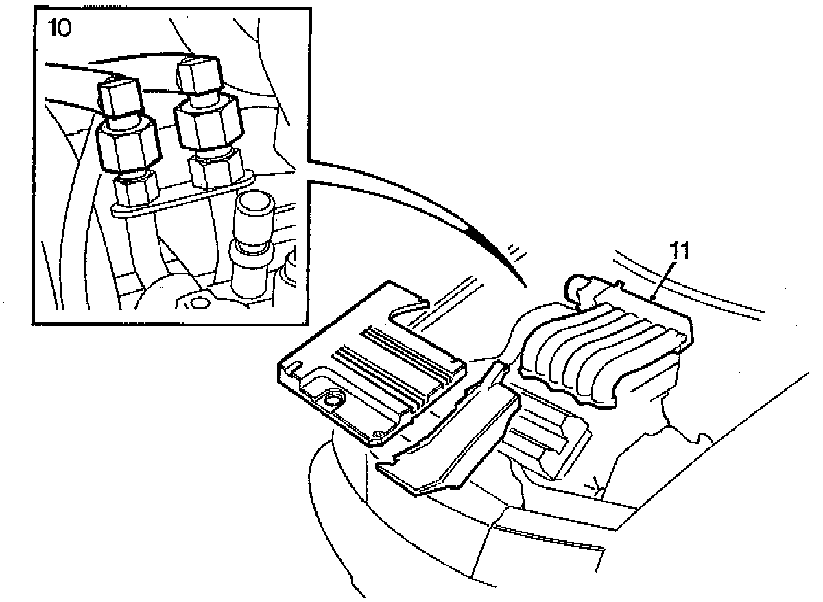 4. Install the oil cooler pipes and tighten to: 30 Nm (22 ft. lbs.).