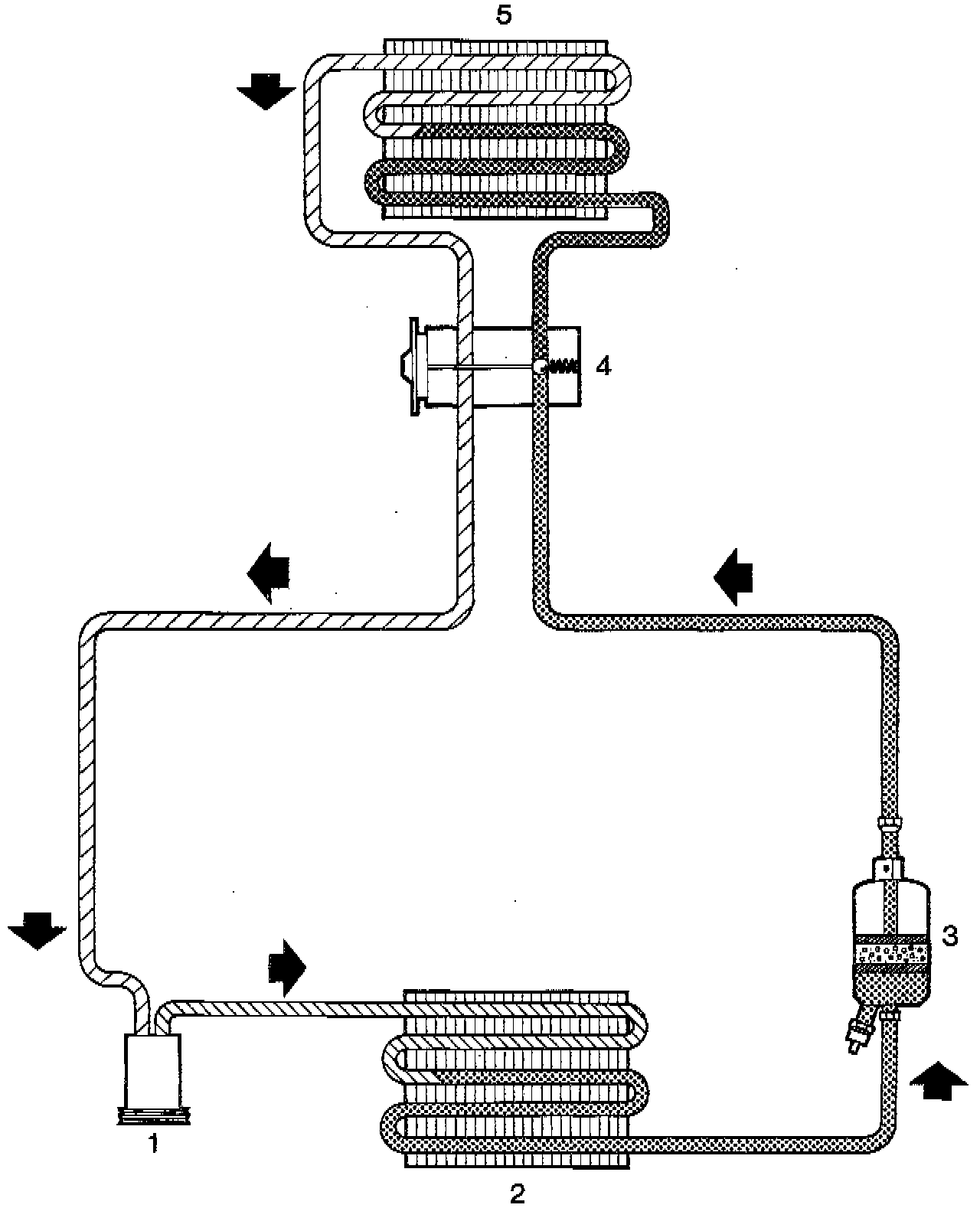4 - Expansion valve (fitted in the climate control unit on certain variants)