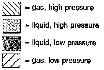The refrigerant we use for the air conditioning system is a liquid (R134a), which boils and evaporates at a low temperature (-30 °C at normal air pressure). The refrigerant has a constant pressure temperature relationship, which means that if the pressure is changed, the temperature changes as well and vice versa. A condition for this is that the volume remains constant.