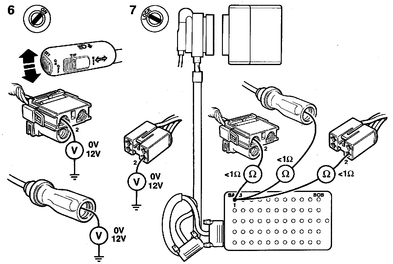 6 Activate the direction indicator switch and check the power supply to the direction indicator lamps by taking readings as follows: