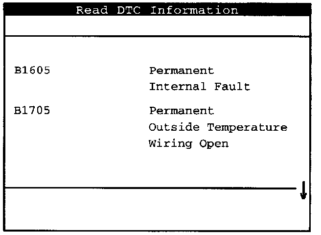 There is room for a maximum of 3 diagnostic trouble codes in the display. If there are more than three diagnostic trouble codes, up or down arrows will be shown in the upper and lower part of the display. In such case, press the corresponding selection key to see the other trouble codes.