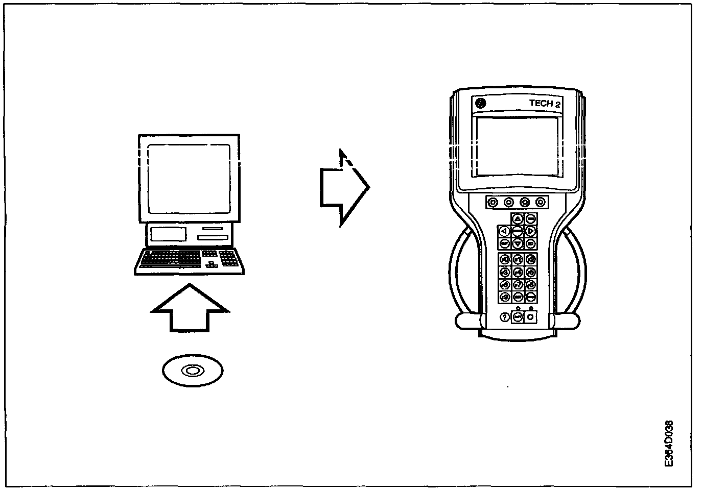 4. Start the PC. Start the procedure for downloading information to the Tech 2 and follow the instructions on the display.