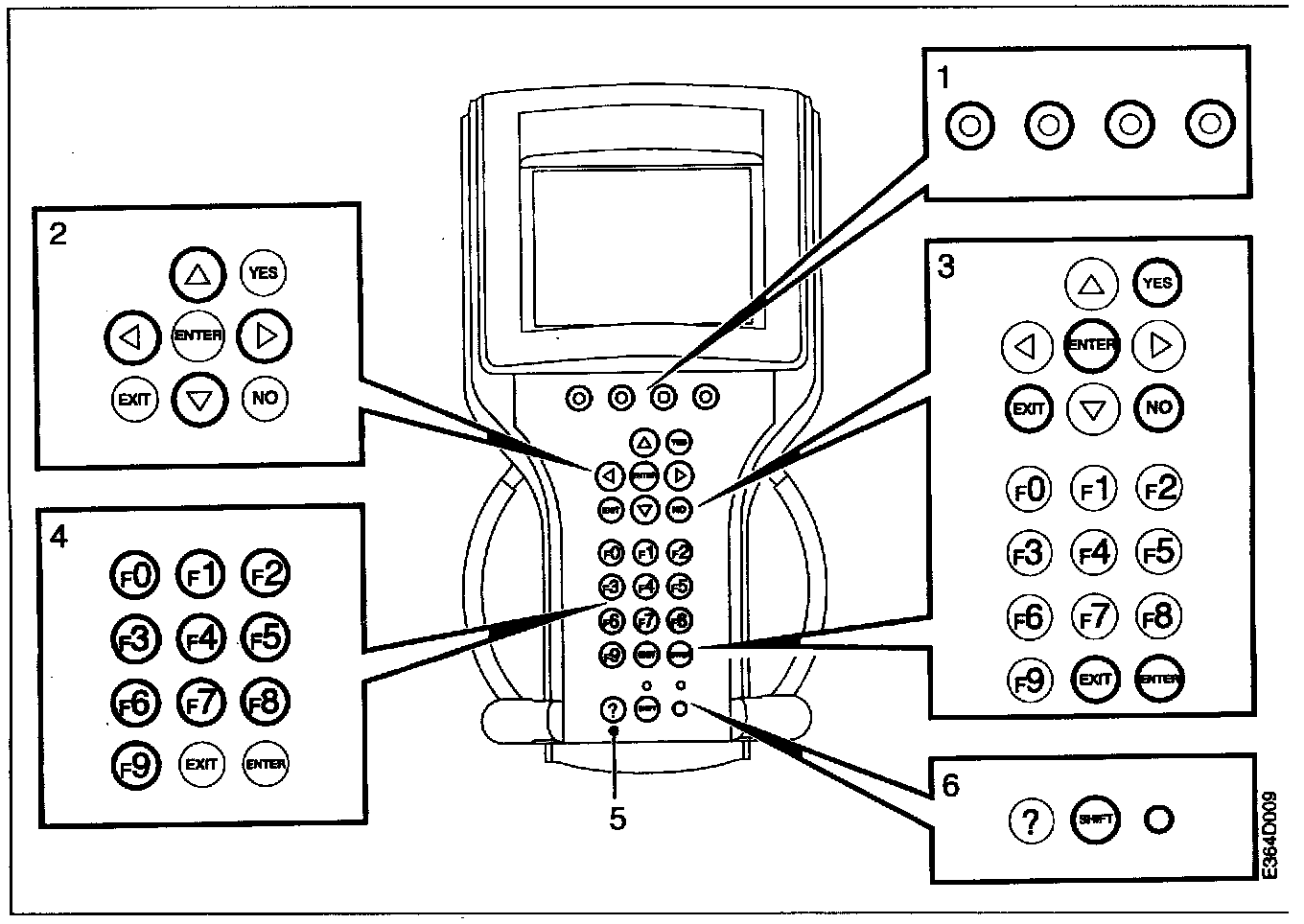 The function keys "F0"-"F9" are used for special menu functions. Certain menu choices have an F number and a description. They can be used as an alternative to positioning the cursor on a line and pressing "ENTER".