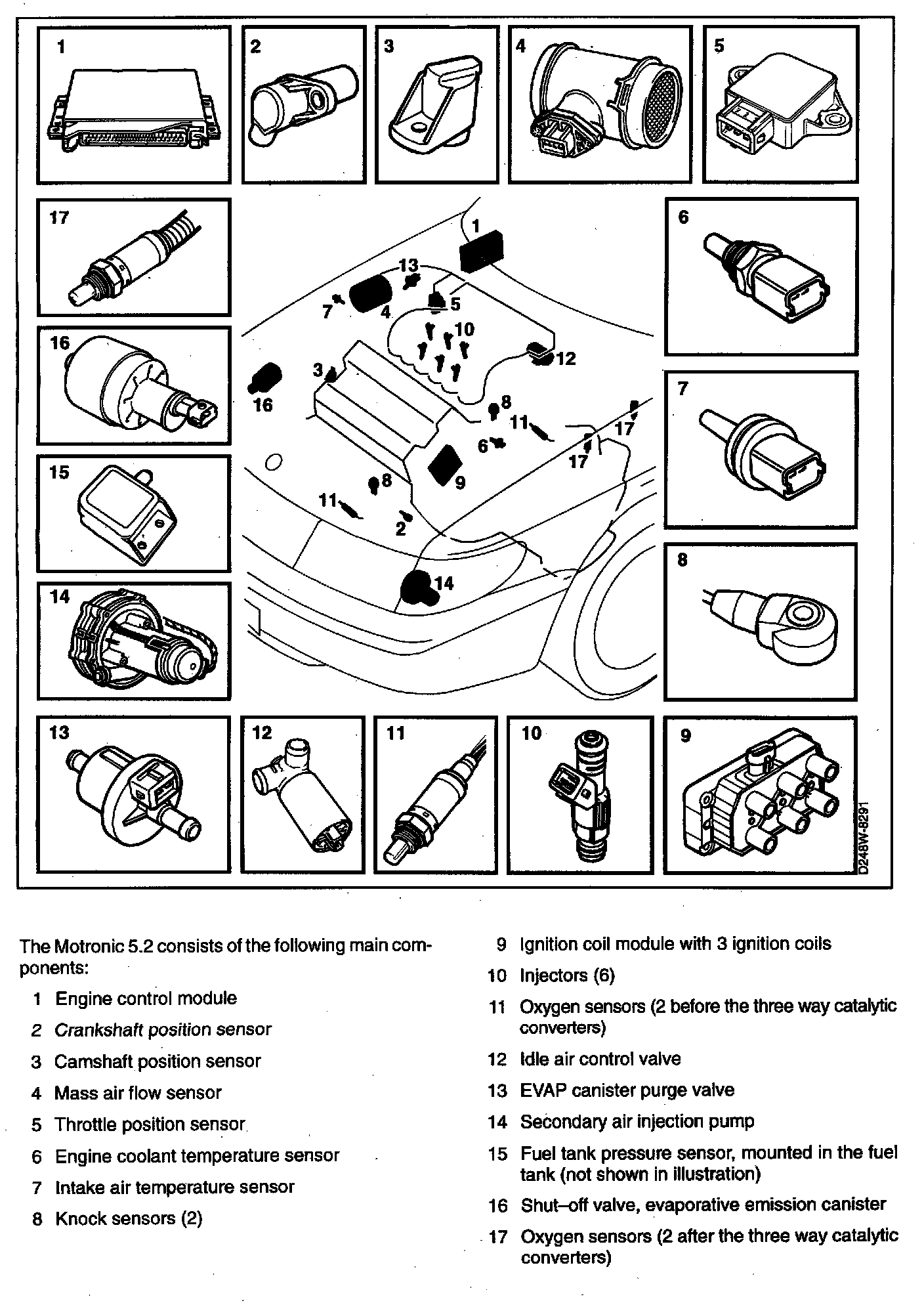 The Motronic 5.2 consists of the following main components: