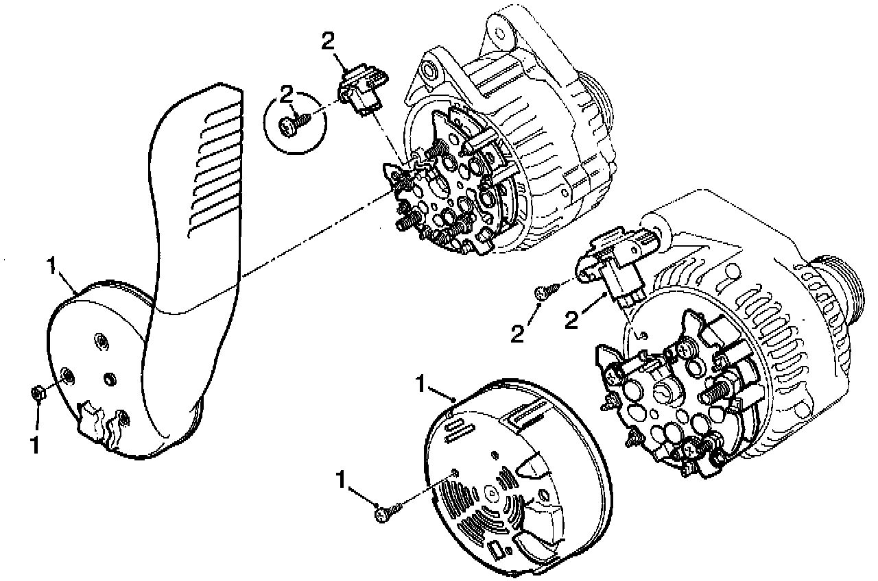 1 Undo the three bolts to remove the alternator's protective cover. Life off the cover.