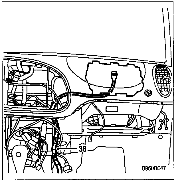 38. Run the new harness alongside the existing one up to the passenger airbag.