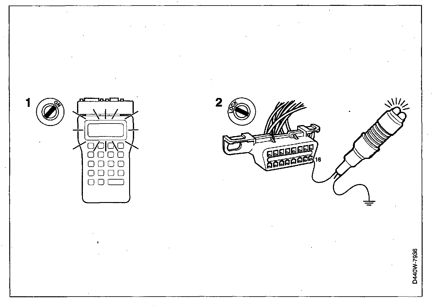 - Connect a test lamp to pins 4 and 16 of the data link connector.