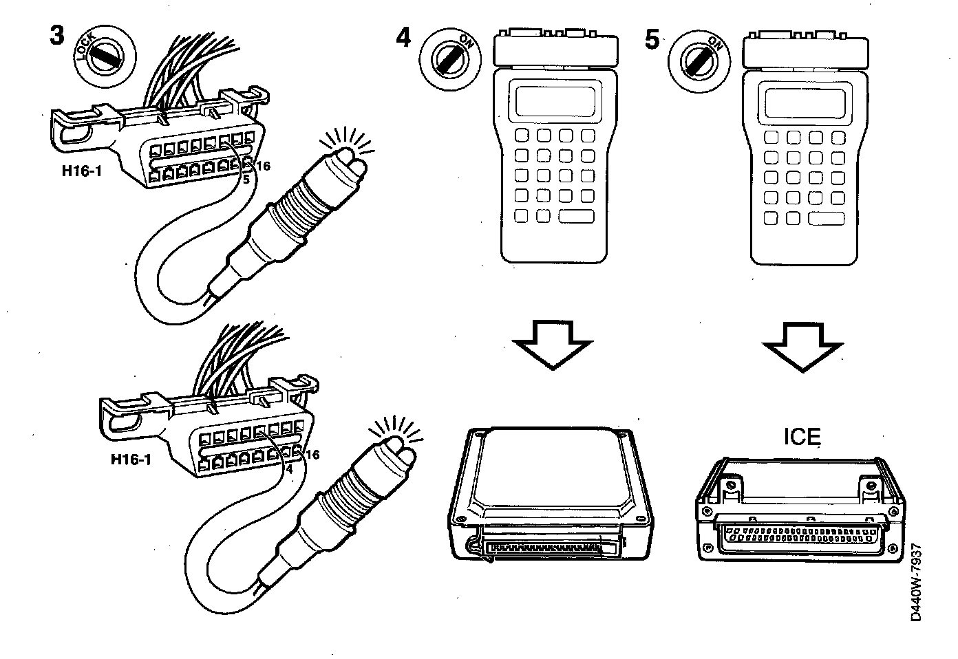 - Connect a test lamp to pins 5 and 16 of the data link connector.